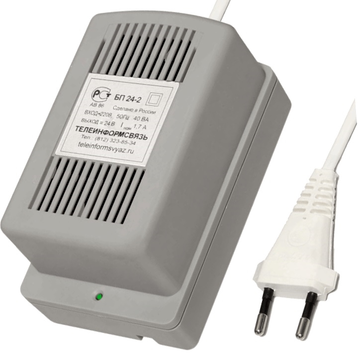Телеинформсвязь, БП-24-2A - источник электропитания, который предназначен для питания электро- и радио- аппаратуры выпрямленным переменным напряжением 24 В и током не более 1.5 А.