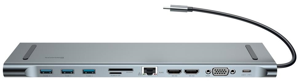 Хаб Baseus Enjoyment Series PD/HD4K*2/VGA/RJ45/SD/TF/USB*3/Adapter (CATSX-G0G)
