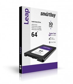 Твердотельный внутренний диск SSD Smart Buy 64GB Leap, SATA-III, R/W - 500/400 MB/s, 2.5", Marvell 88NV1120, 3D MLC